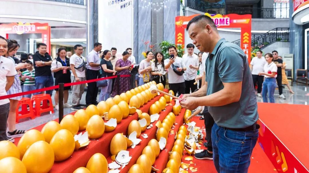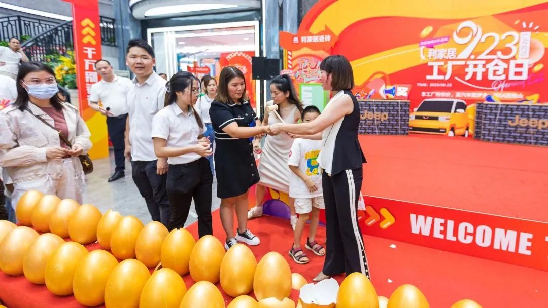 品牌一年一度的“入厂团购+全国联动”活动同步进行,后续的总部直播抽奖环节将现场的活动氛围推向高潮,福利钜惠覆盖整个流程,豪礼大奖循环抽,数百个金蛋砸不停,华为笔记本电脑、小米电视机、吉普山地自行车等礼包逐渐被清空,更有台上的奖券抽奖精彩不断,现场热浪不止。